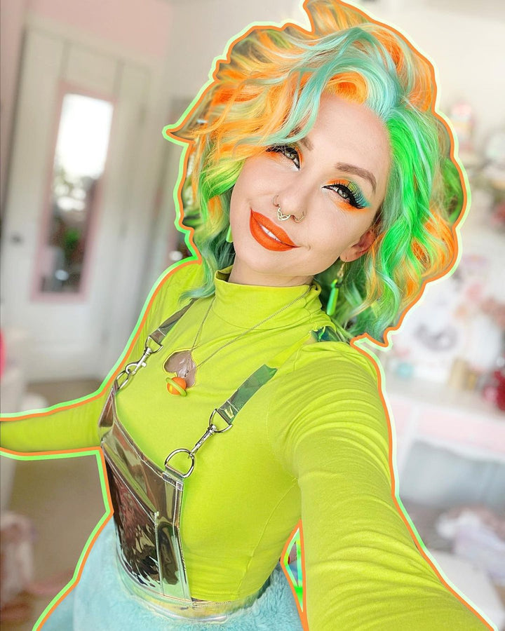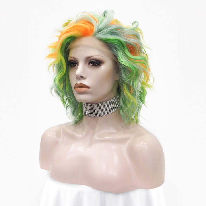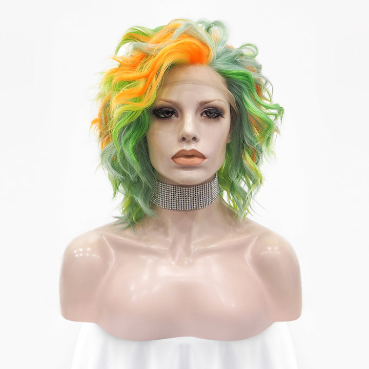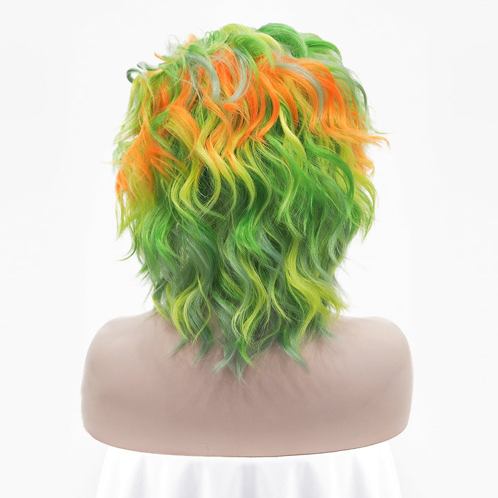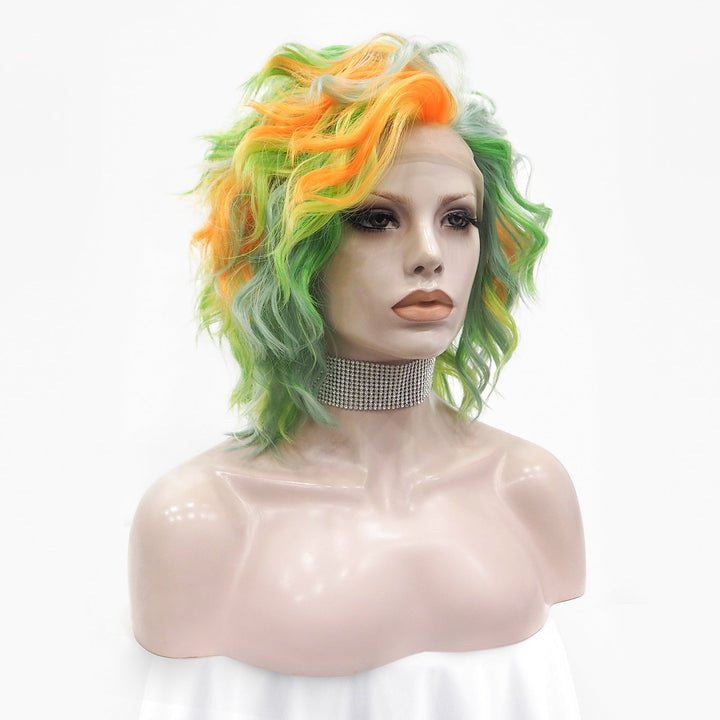Spring Green and Orange Yellow Short Curly Synthetic Lace Front Imstyle Wig