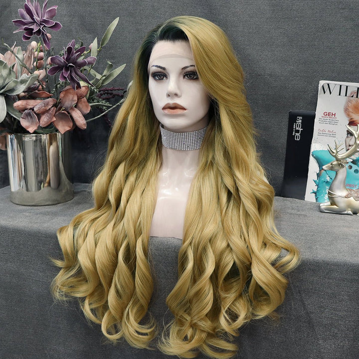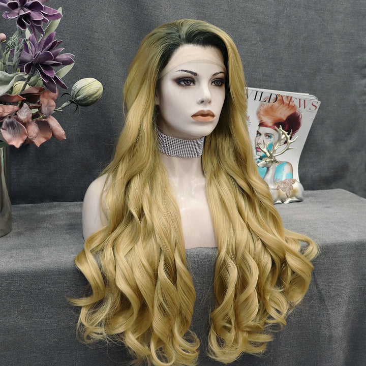 Tina - Blonde With Dark Root Long Wavy Synthetic Lace Front Wig