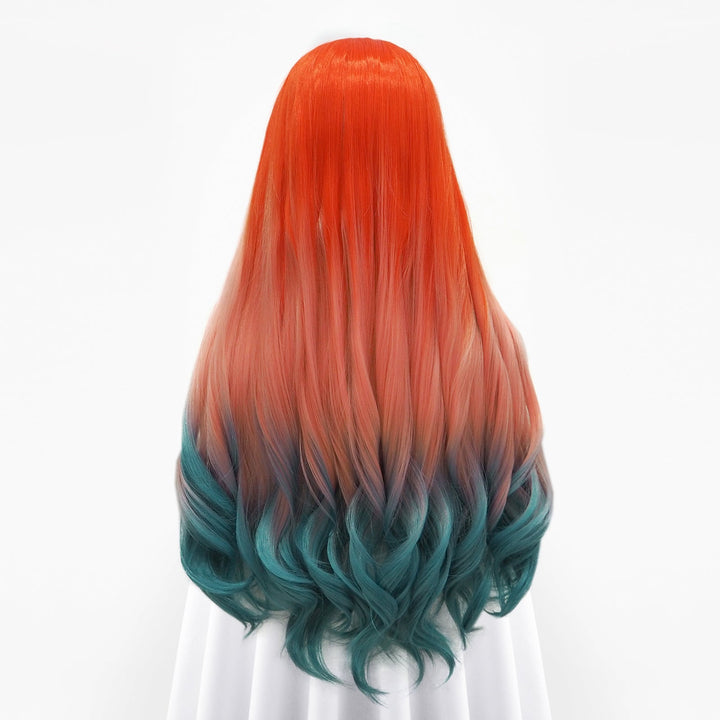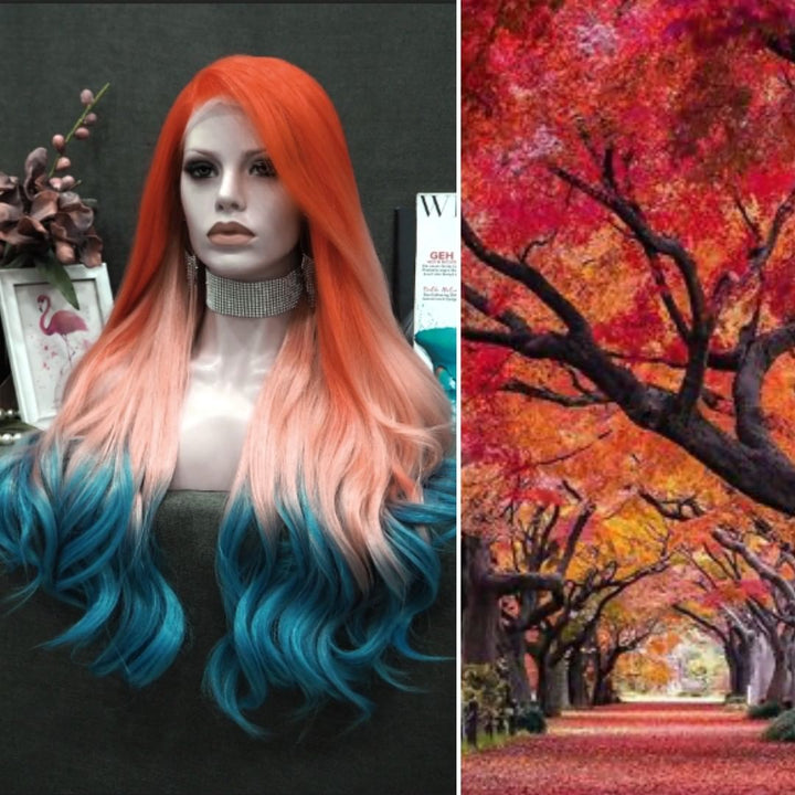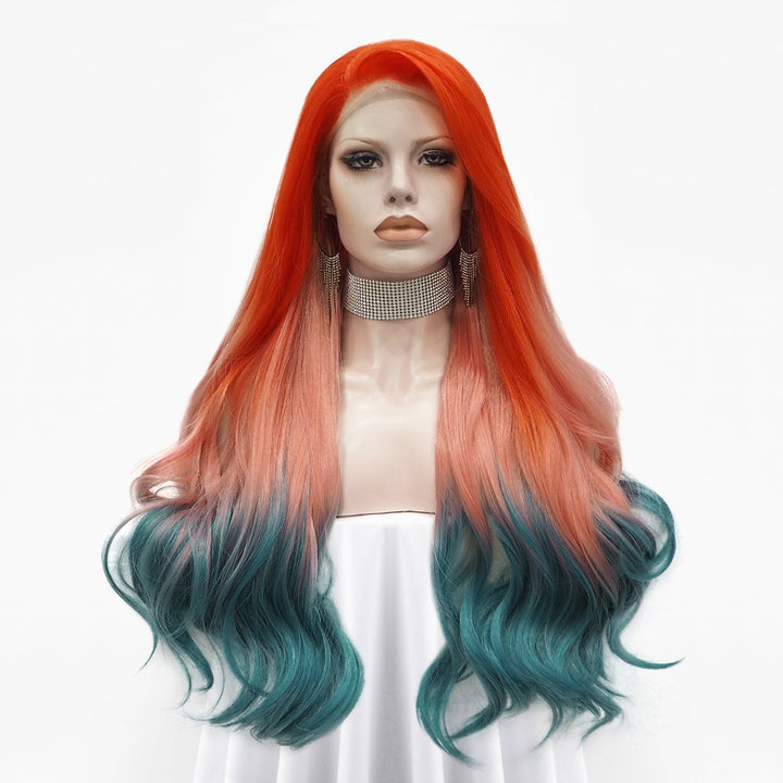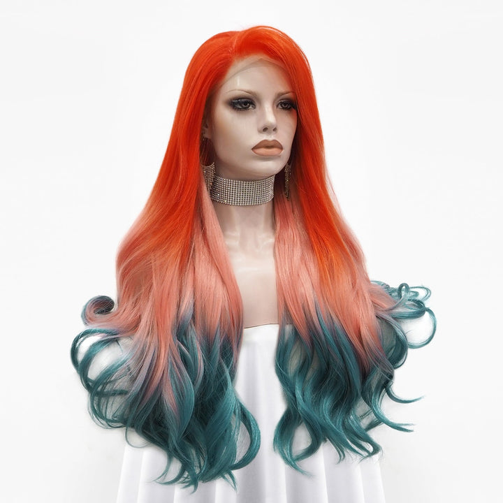Venus - Coral-Orange Blue Ombre With Silver Synthetic Lace Front Wig