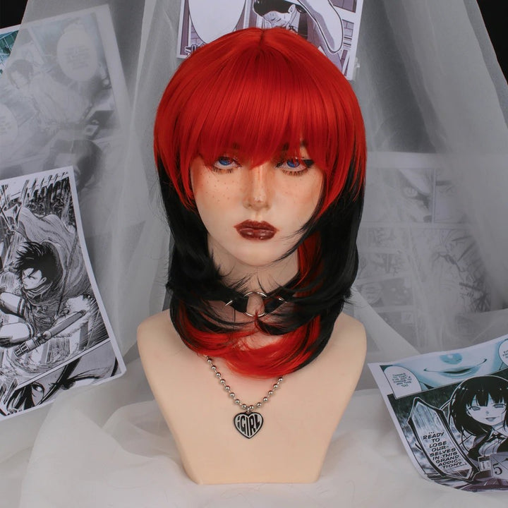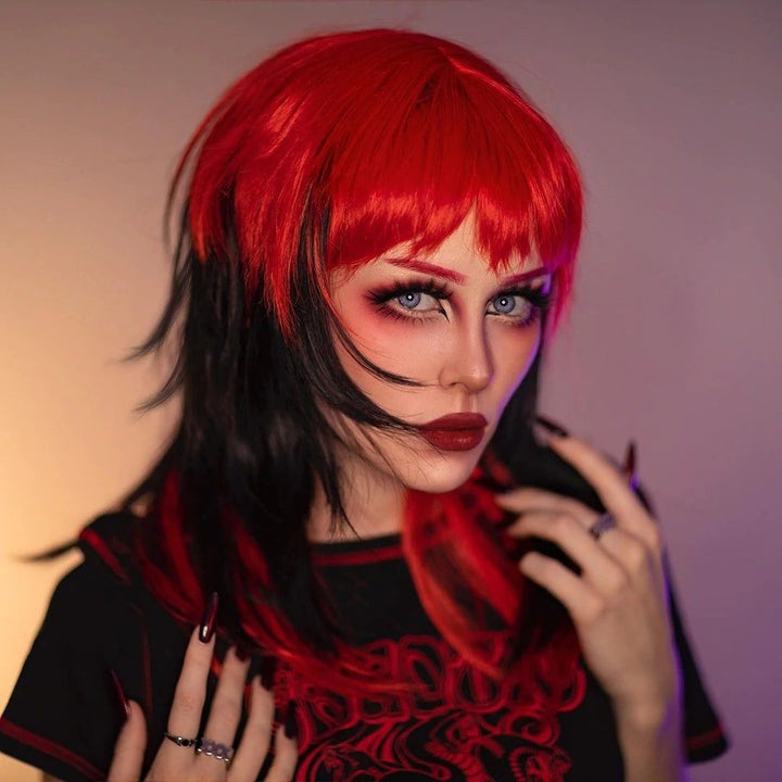 Wet Paint - Black With Red Hidden Shoulder Length Mullets Synthetic Imstyle Wig