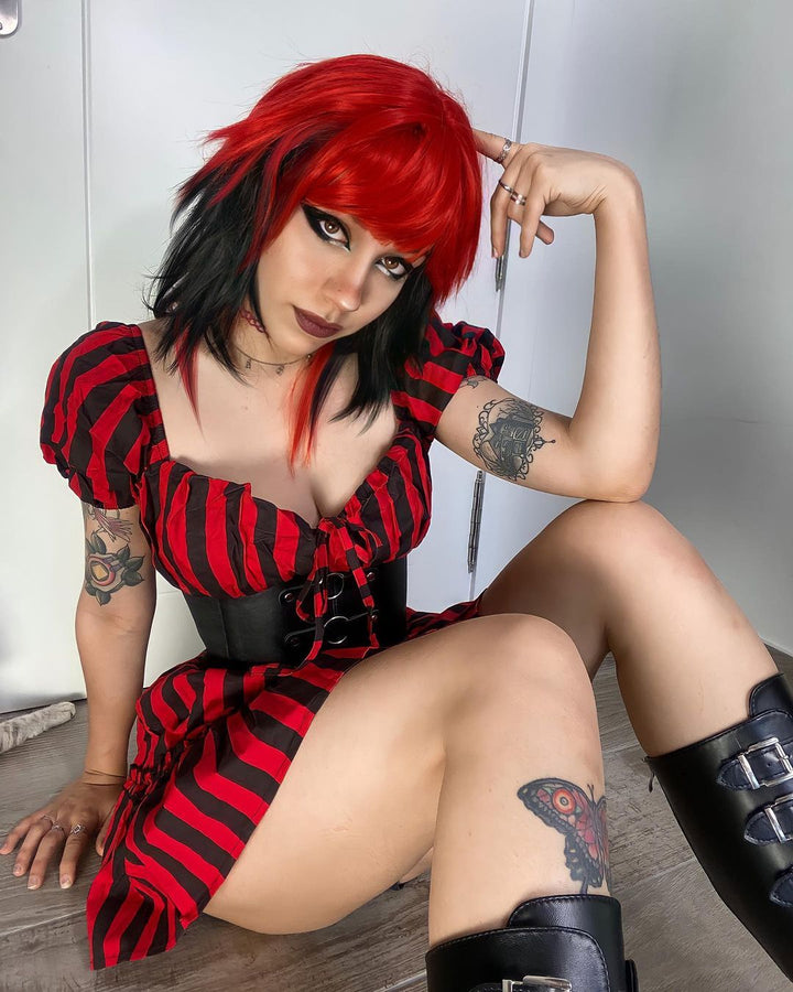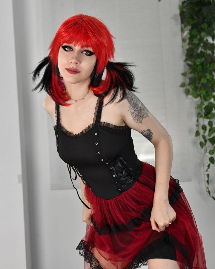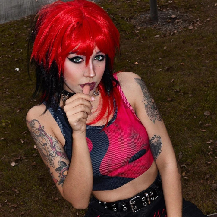 Wet Paint reminds of a bucket of hot red paint poured vertically from above. Wet Paint is a machine-made wefted cap construction with a skin top parting at the crown for a more realistic-looking part. Wet Paint is a style that full of wild and personality, be the coolest girl with this coolest wig! The soft skin top on the front cap allows a natural parting line, wear Wet Paint, shows your unique personality and good taste.