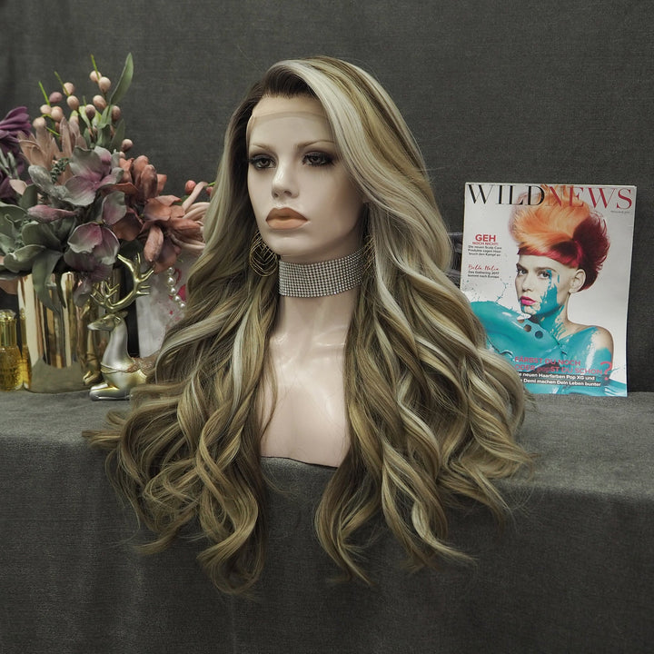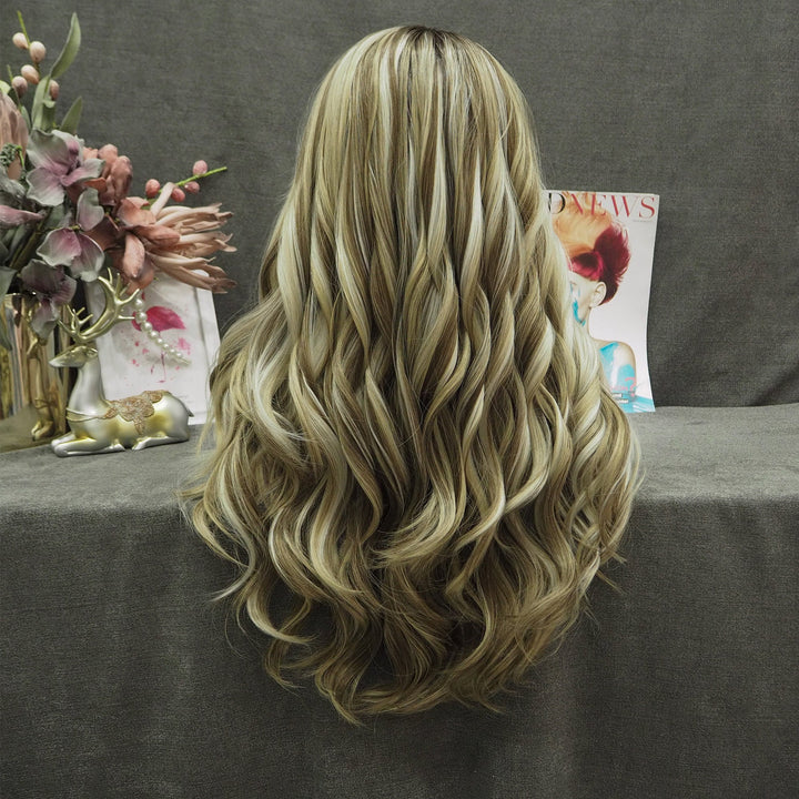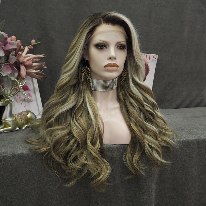 Imstyle-Sandra-brown and blonde with highlight wavy 26inches with no parting synthetic lace front wig